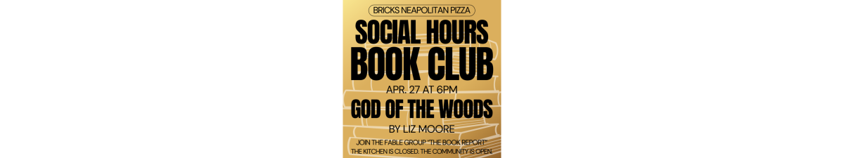 The kitchen is closed. The community is open. Join Bricks Neapolitan Pizza and the fable group "The Book Report" for a discussion of "God of the Woods" by Liz Moore at 6:00 p.m.!